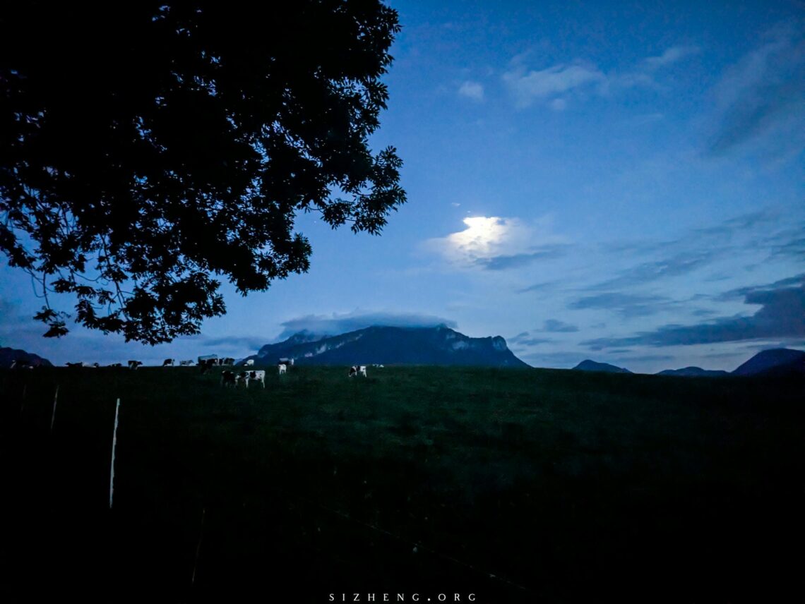 感觉上不像是天文台,更像是养牛场啊哈哈哈!这边没有路灯,真的是一片黑暗,AI 也拯救不了拍出来的渣画质,实际上肉眼看到的景色还蛮好看的。也因为没有光源,这一天的小雪还猜不出耳朵听到的铃铛声是哪里传出来的。山上风大,叮叮当当一片,小雪还猜是不是将风铃绑在栅栏上呢!