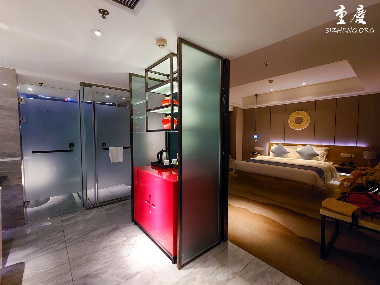 酒店临江,大堂在22楼,这是从嘉陵江滨江路上来算的,如果从魁星楼过来就是-1楼了,就是这么魔幻。