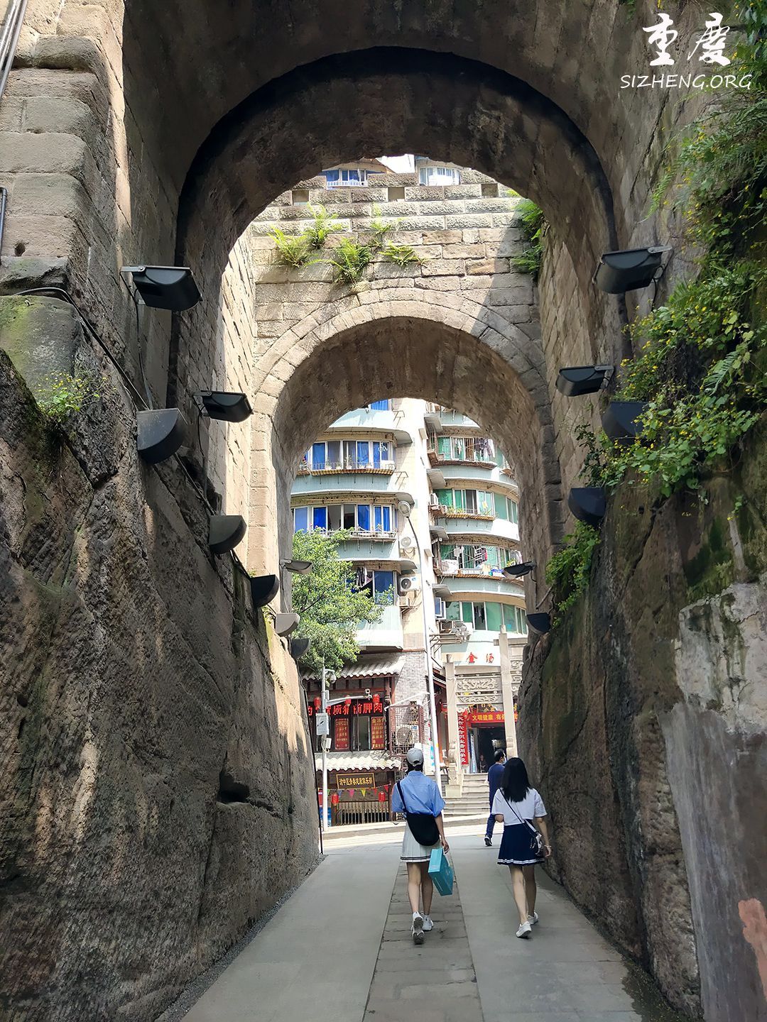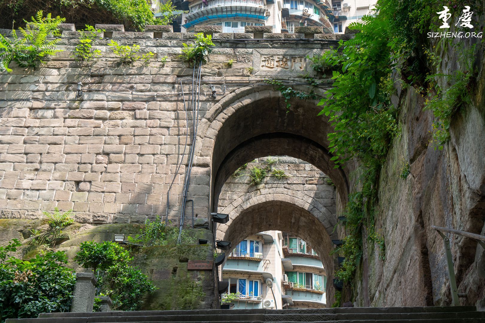 现通远门是重庆城仅存的两座古城门之一,建有通远门城墙遗址公园。
