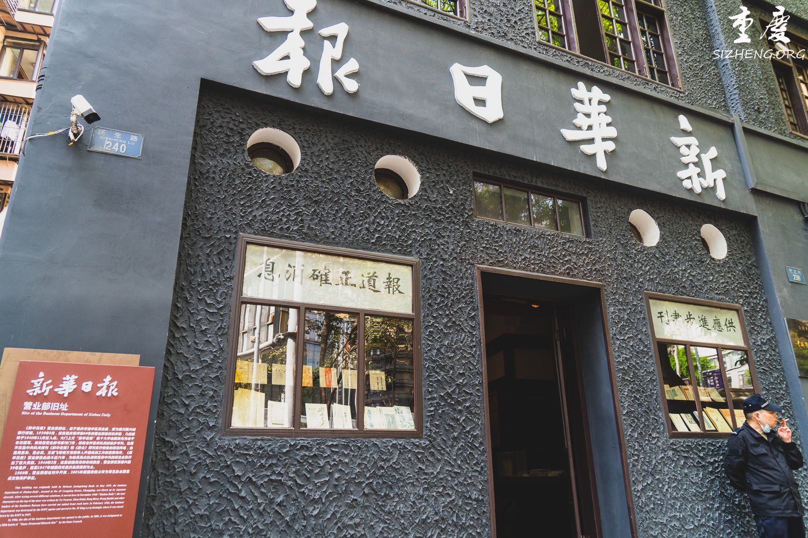 《新华日报》营业部旧址建于1930岁,原为四川聚兴城银行建设,座北朝南,是一栋中西式黑坐砖木结构,三楼一底。营业部喇叭和正面墙体上,单独砌挂有于右任题写的「新华日报」四字招牌。底楼是营业部,二楼是营业部办公室,皖南事变后,周恩来、董必武等常在此与国统区人士秘谈。三楼是住房。