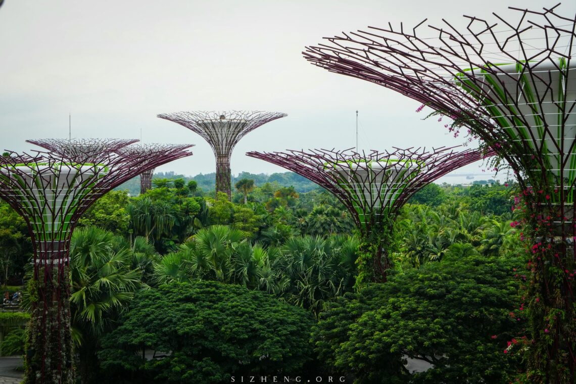 一踏入滨海湾花园,你的目光一定会被那些直插云霄的“巨型树木”擎天树(Supertree Grove)牢牢吸引。最高的擎天树竟然有16层楼那么高,站在下面仰望,那种震撼感简直无法用语言形容!