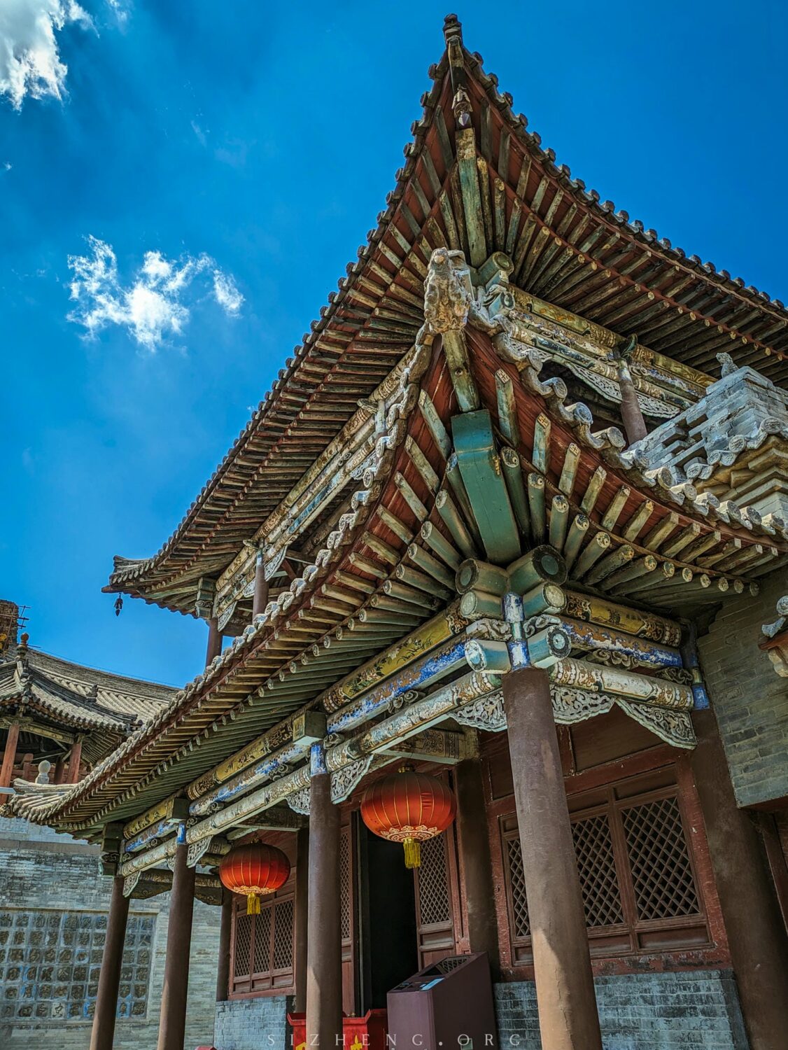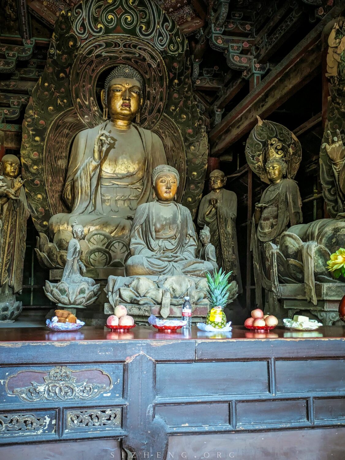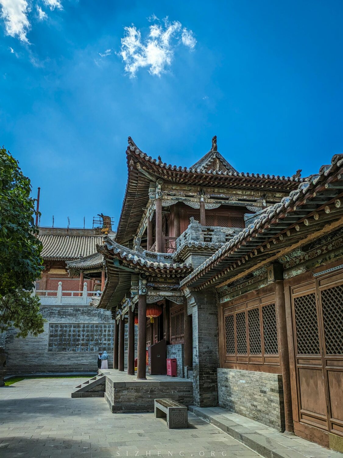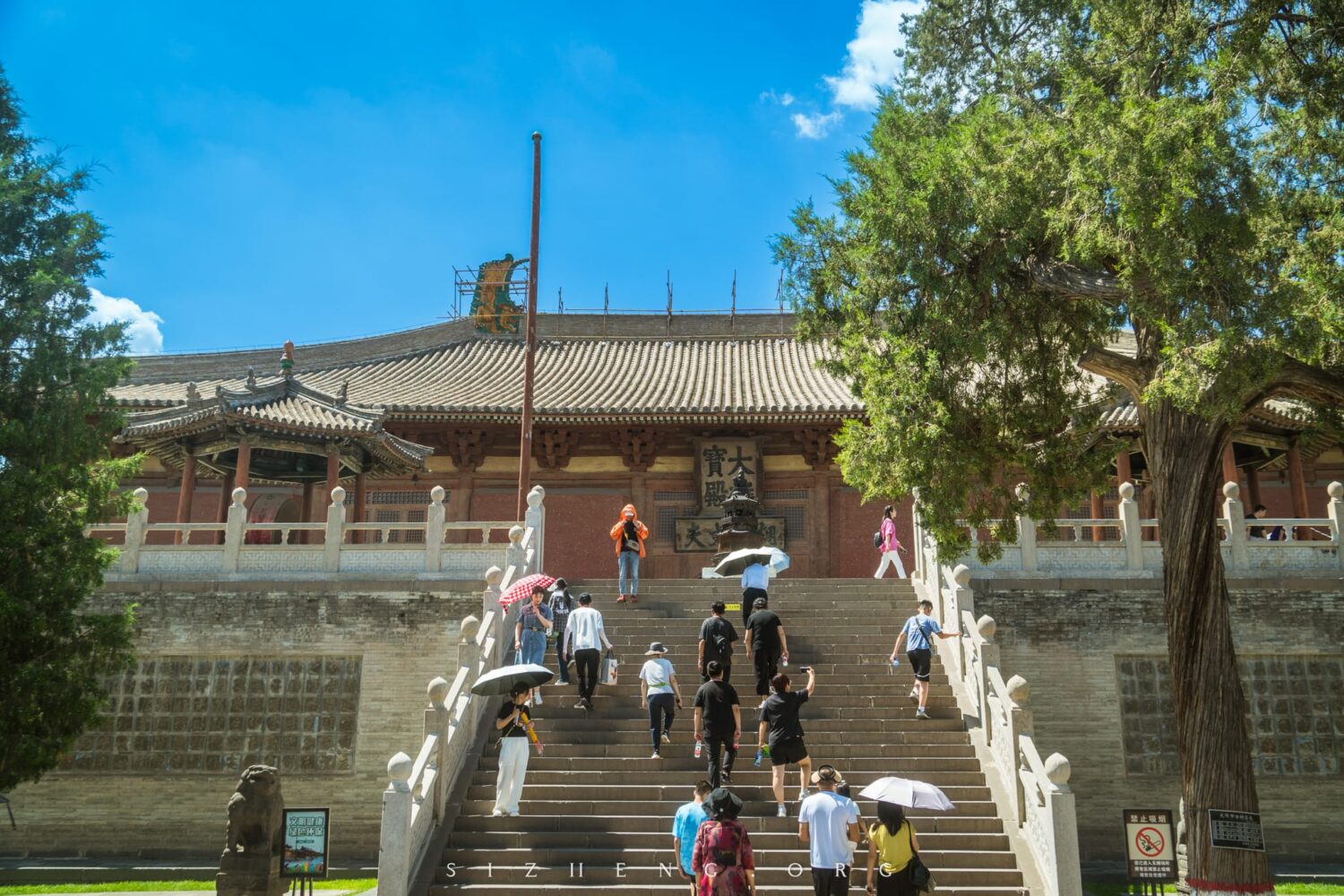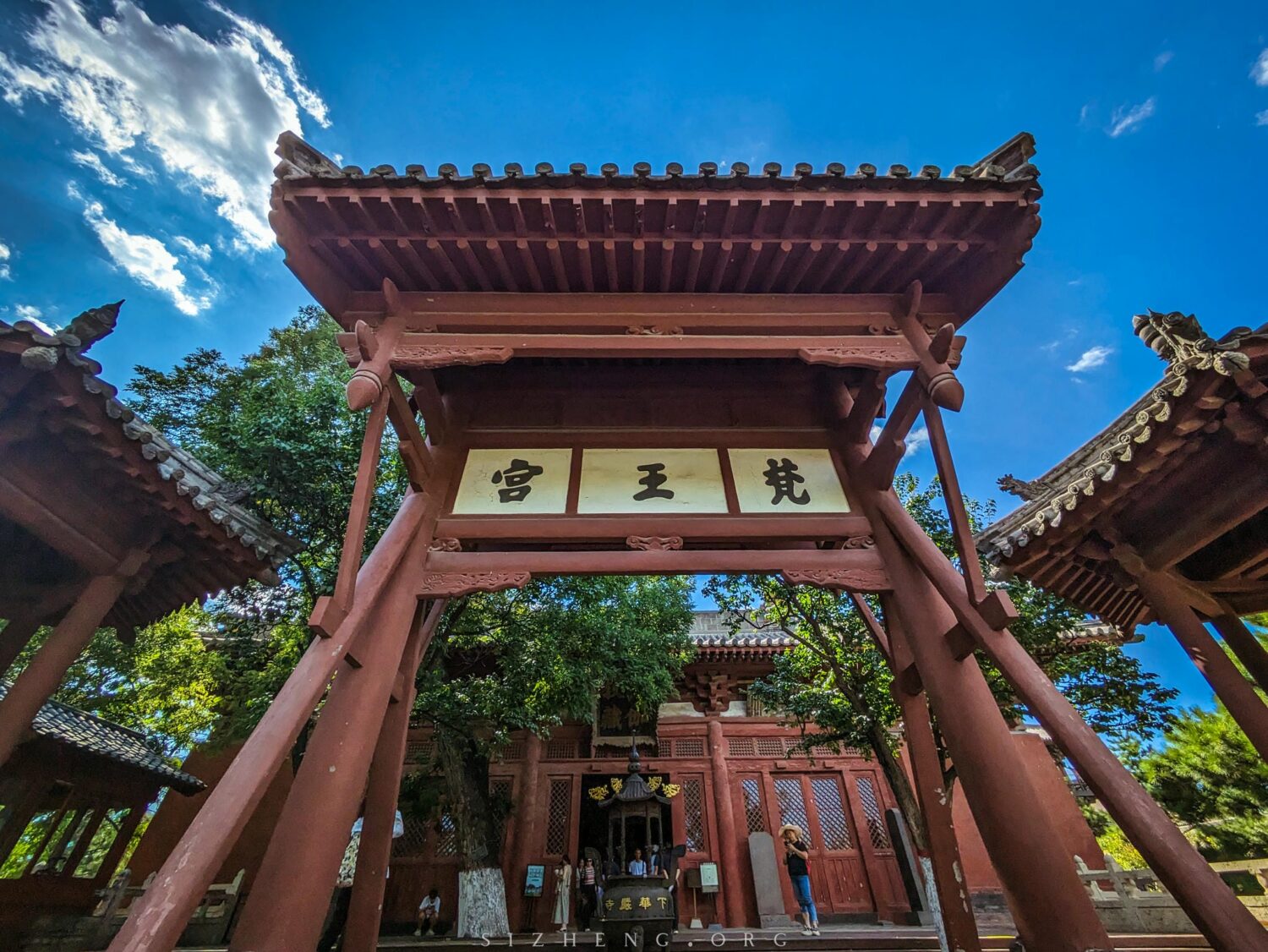 这座单檐庑殿顶的大雄宝殿是始建于辽代,毁于兵火后在金代又旧址重建,它是中国现存规模最大的古代木构佛殿建筑。不得不说,大雄宝殿真的是十分宽大啊,手机广角都照不全,站在殿前,压迫感就很重了。仔细看它门的形状是不是很特别?这叫做壸kūn门10,是中国现存最古老的壸门。