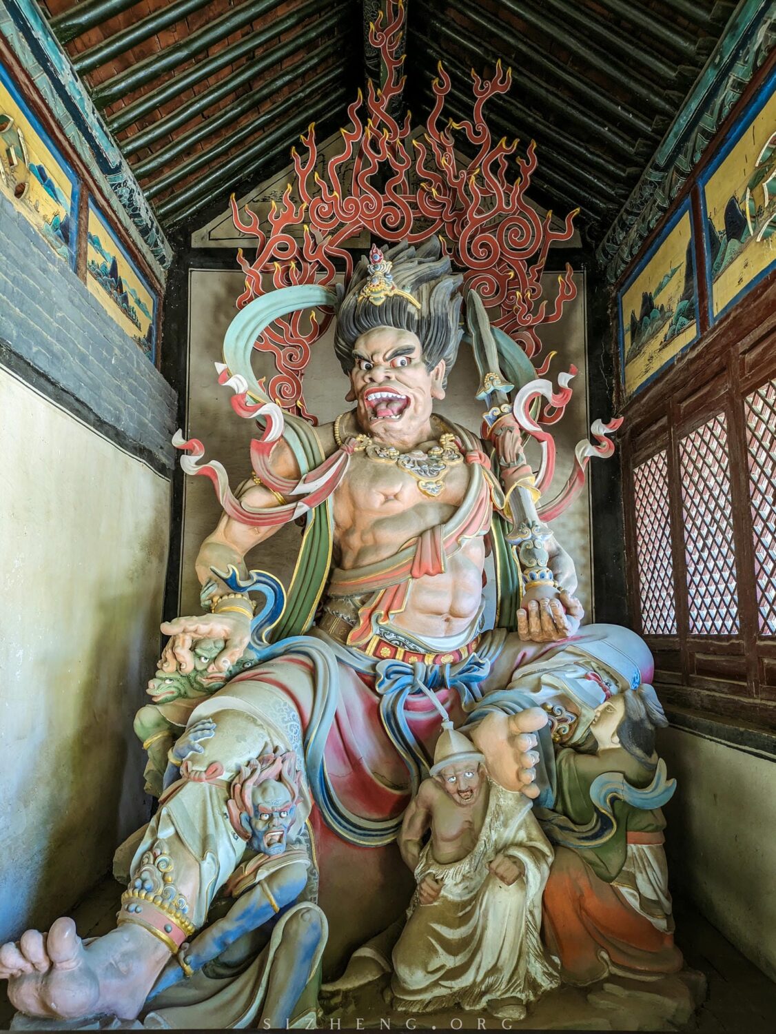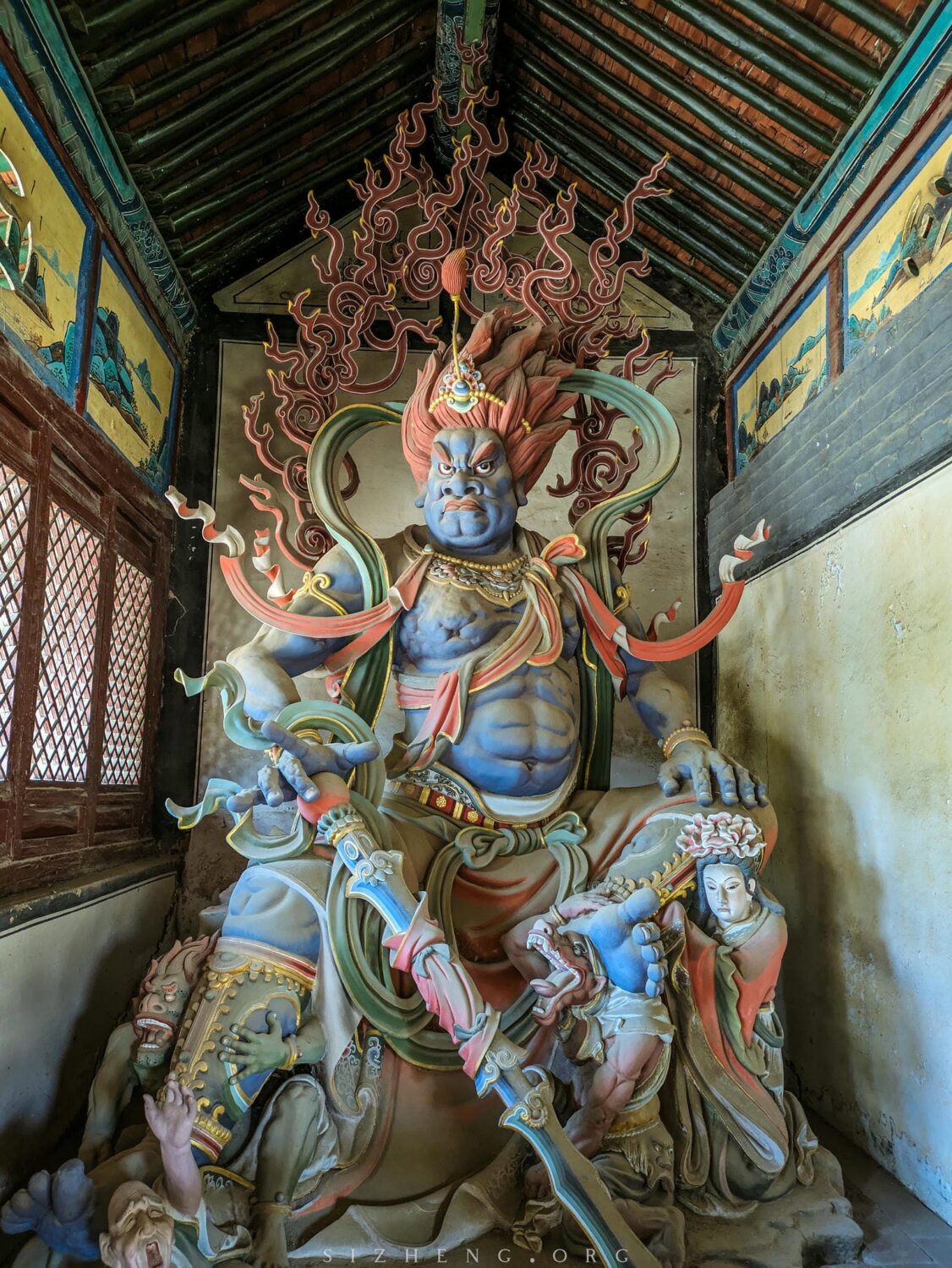 门口的护法金刚塑像十分趣致。右侧为那罗延天哈将,左侧为密迹金刚哼将,皆是脚踏恶鬼,怒目圆睁。其中张嘴的是哈,闭嘴的是哼。小雪也叫他们“没头脑”和“不高兴”,哈哈哈哈,不知道现在的小朋友还知道他们不?