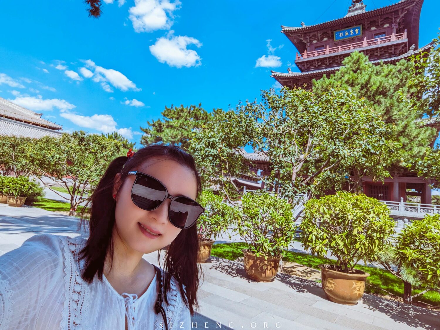 在大雄宝殿之后还有个新建的千手观音殿,感觉普普。不过这天太阳真大,好晒呀。看小雪照片就知道了,饱和度巨高。