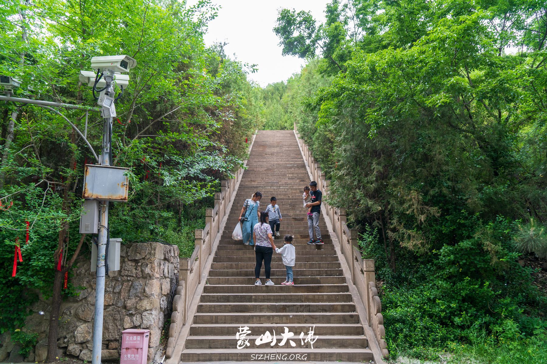 不知是天气缘故还是这个景点人气不高,小雪来的时候并没有见到什么游客,等了好一会儿才坐满一车上山。原以为这接驳车可以一直把游客送到大佛脚下,小雪太天真了,想什么美事呢。一下车就看到高高的台阶,看不到佛在哪里。哦,佛祖在我们心中。