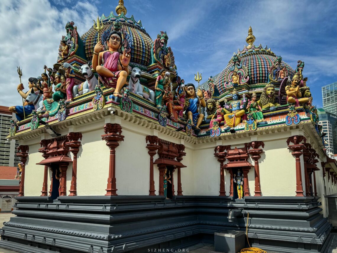 马里安曼庙(Sri Mariamman Temple)位于新加坡牛车水,是新加坡最古老的印度教寺庙,建于1827年,由南印度移民纳拉伊那·比莱(Naraina Pillai)创建,最初为南印度泰米尔裔移民提供宗教和社区服务。最初的庙宇为木板结构,后逐步扩建为砖石建筑,1843年建成标志性的庙门塔(Gopuram),并于1930年代改造为现今的六层高塔楼,是新加坡重要的历史地标。