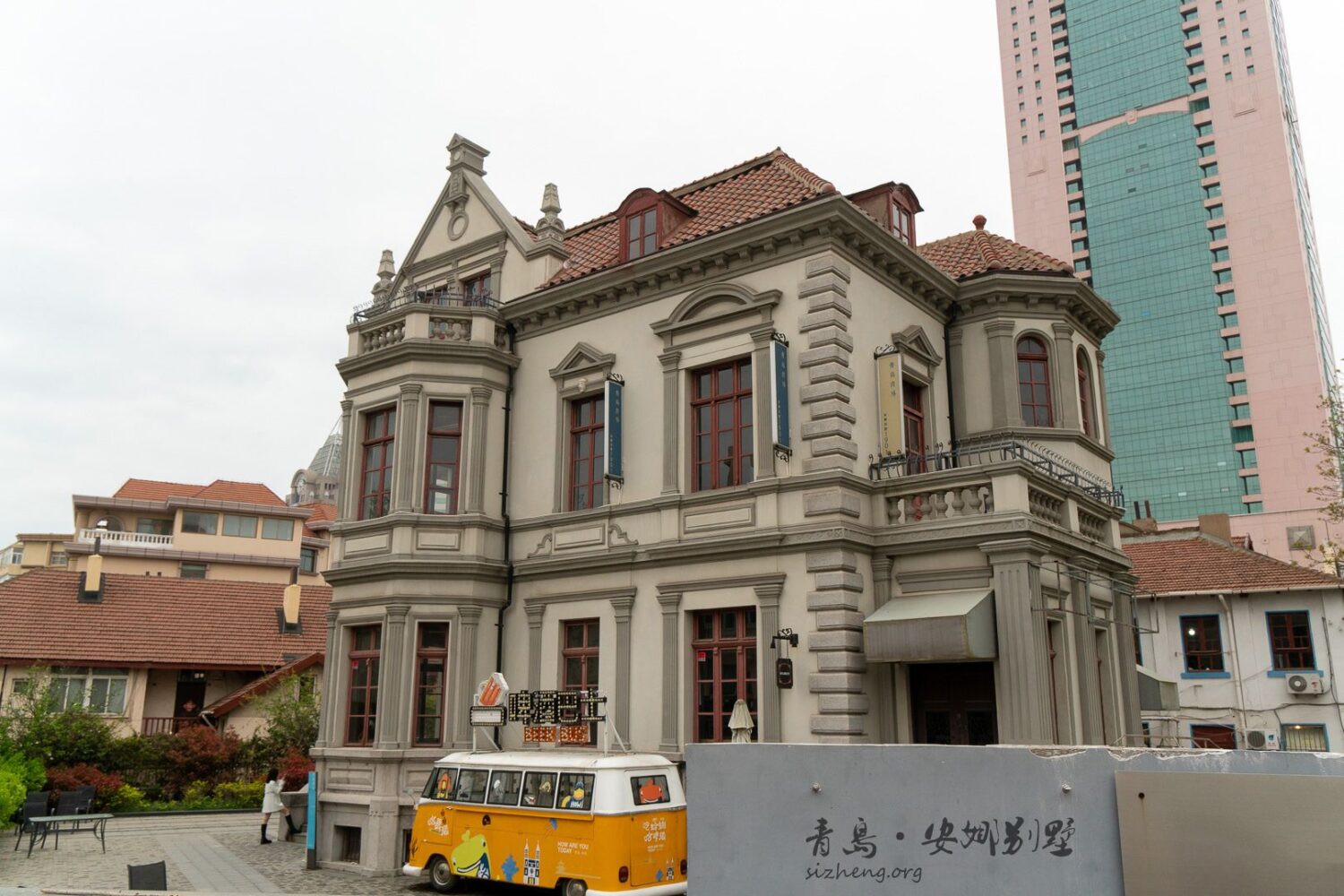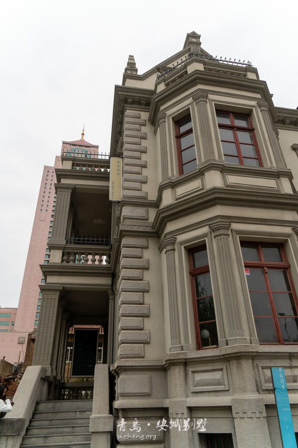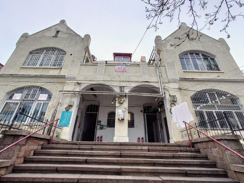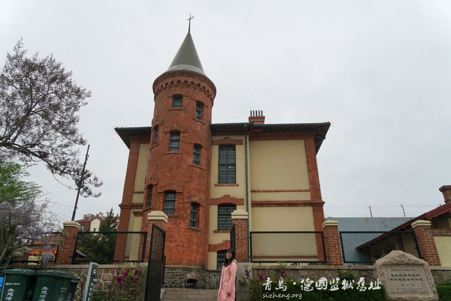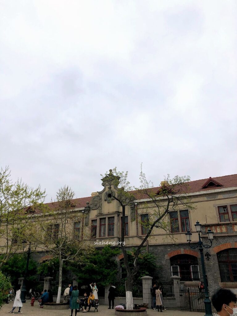 小雪在教堂前的小广场待了一会儿,鼻水狂流,受不了。当天青岛的天气并不美丽,灰蒙蒙的,还特别冷,又一次没穿够衣服的小雪在海风中瑟瑟发抖。看了一下地图,决定还是跑步去青岛德国监狱旧址好了,想说运动一下不那么冷。