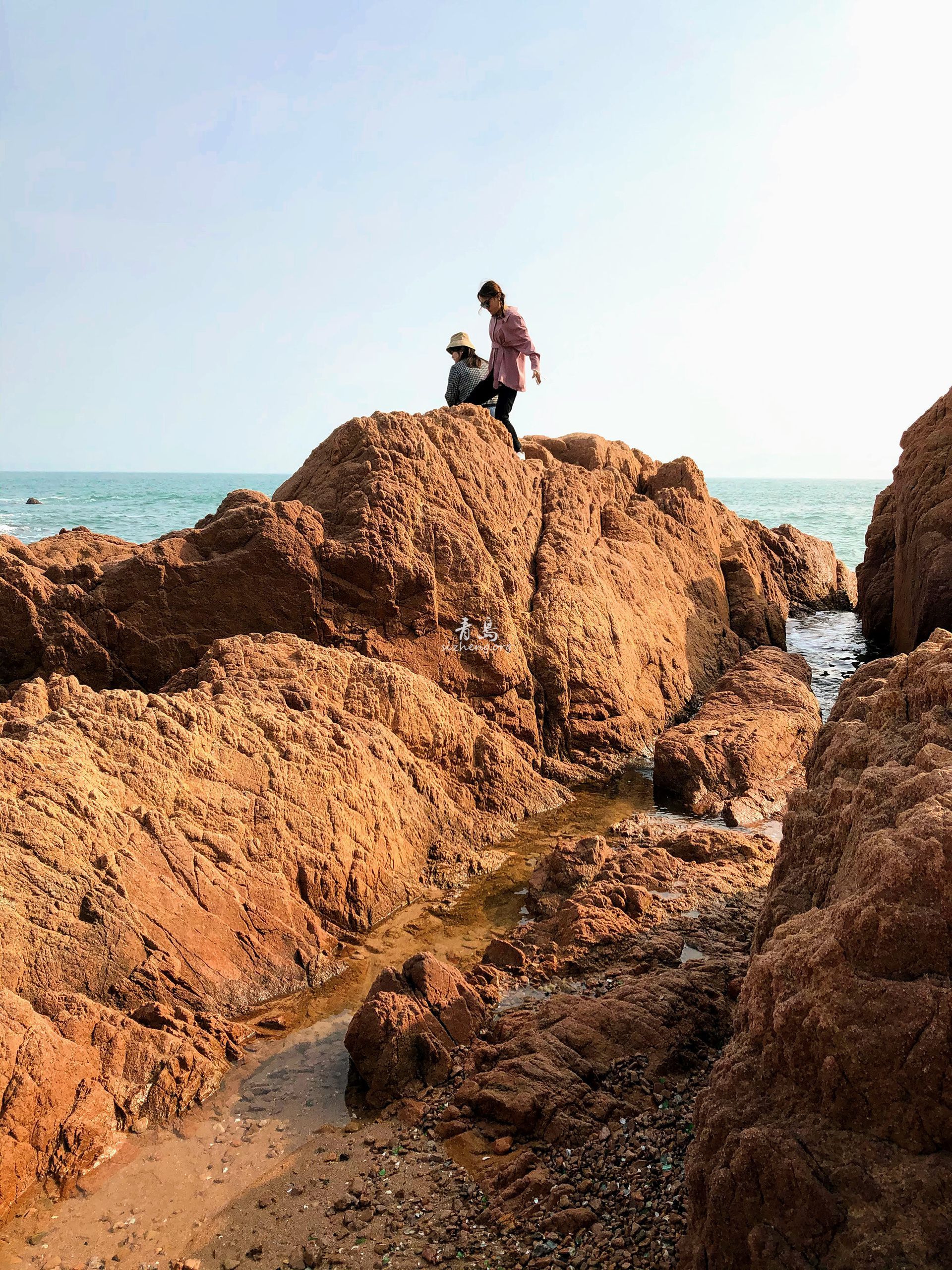 花石楼走出去就是第二海水浴场,小雪在这边的礁石上晒太阳,很惬意,咩哈哈哈。