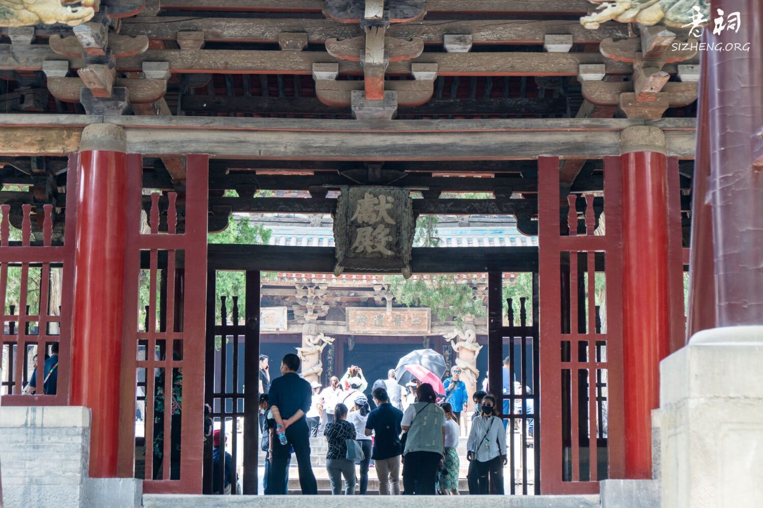导游介绍说,献殿的特别在于它虽然是殿堂,但没有围墙和门窗,只用木栅栏围合,是木结构承重,做到了墙倒房不塌。据北宋李诫《营造法式》中记载,这种栅栏叫做“叉子”。这个殿真的很空很通透,啊哈哈哈,不知道祭祀时东西怎么摆,是要再加桌子吗还是怎样要怎样?