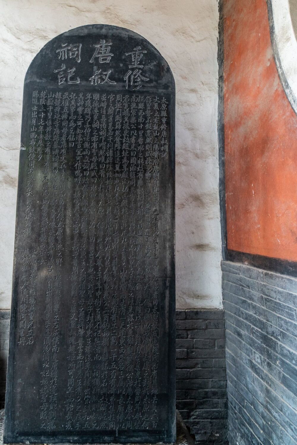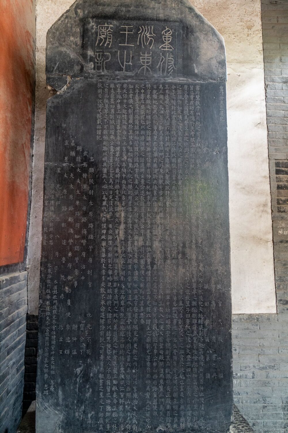 大殿前廊下东西两侧各立石碑一通:东为元至元四年(1267)《重修汾东王庙记》碑,西为康熙二十五年(1686)《太原县重修唐叔祠记》碑。