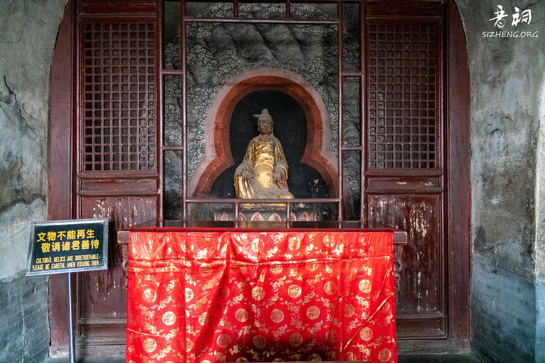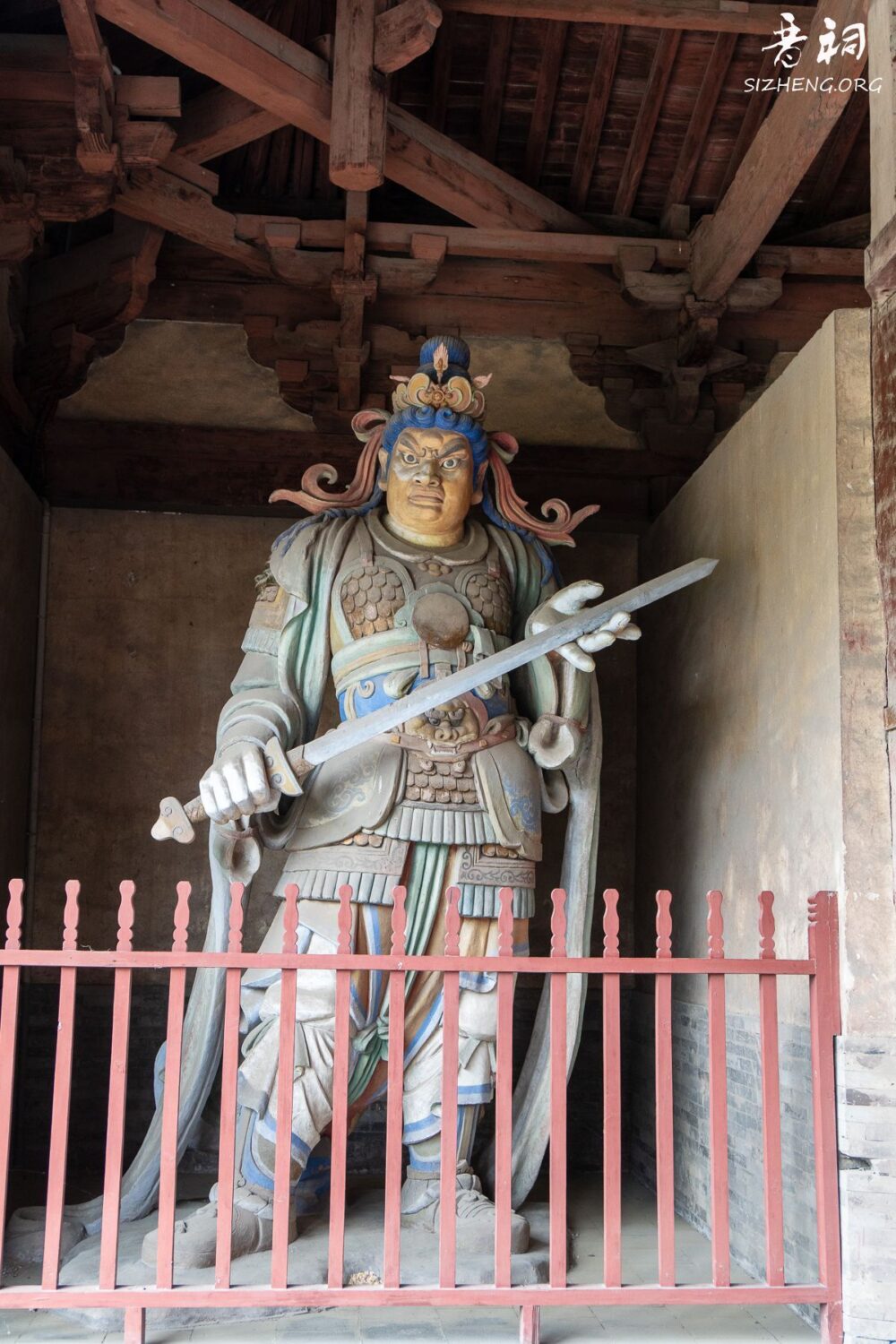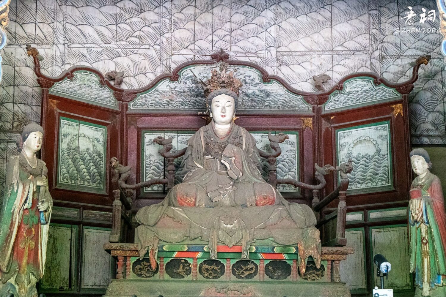 圣母殿内已被拦着,不让游客进入了。从外面向内观察,殿内没有柱子,但也看起来比较拥挤,都是因为那些现代给塑像加装的木龛,感觉一点都不好看。