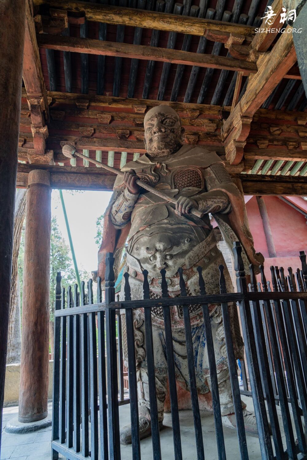 在前廊的两端各立有一尊镇殿将军像,据说是方弼与方相。可是小雪记得方相不是四只眼睛的吗?而且看他们手持的,那是伞?火把?鼓棒?铜锤?