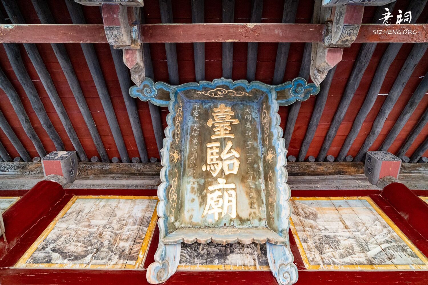 台骀庙的匾额是明嘉靖中憲大夫按察司副使东庄高汝行书,这间庙也是他所捐建。殿内中间供奉台骀神像,左面为土地神像,右面为五道神像。