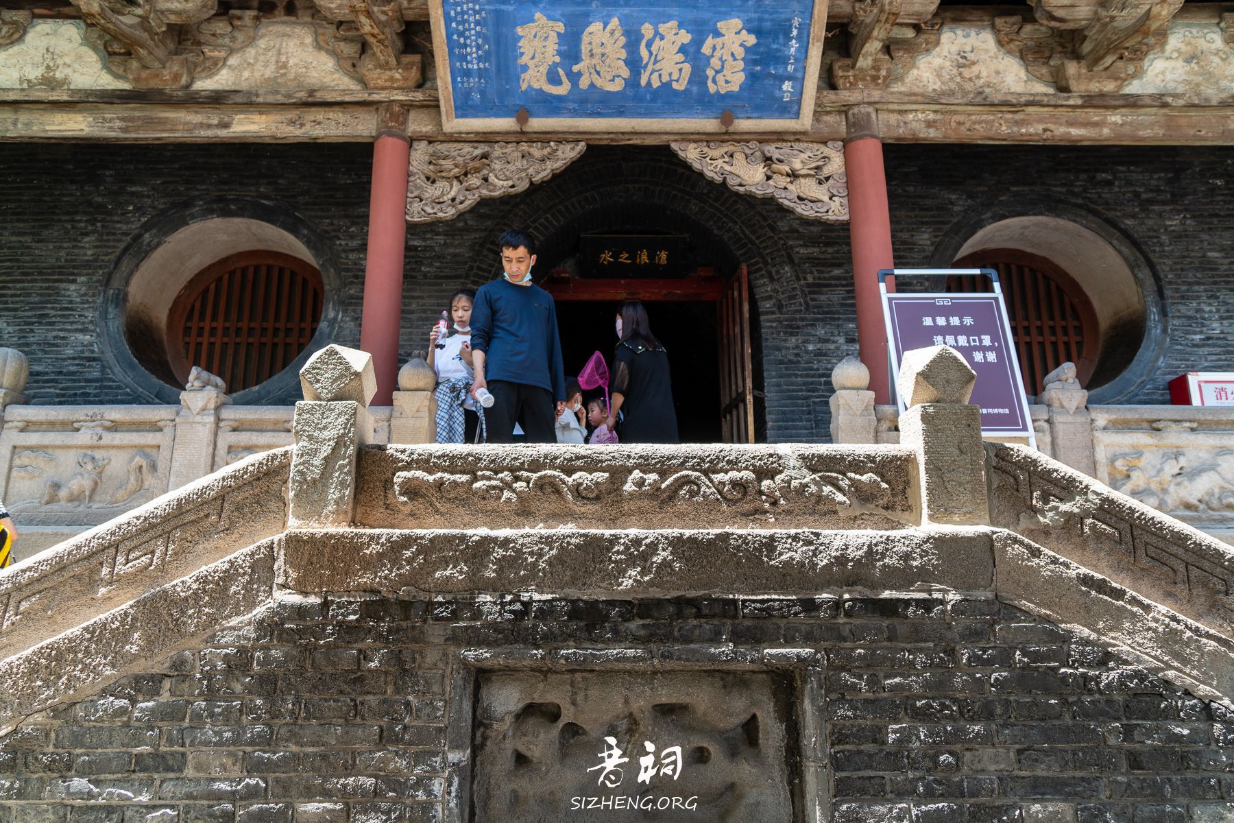 水母楼,又称梳妆楼、水晶宫,始建于明嘉靖年间,清道光年间重修,楼分上下两层,楼上是单檐歇山顶建筑,小雪去的时候不开放参观,楼下为砖砌窑洞开穴,内供一铜质水母像,前廊明间檐下悬挂有清光绪“霑濡悬瓮”匾额。