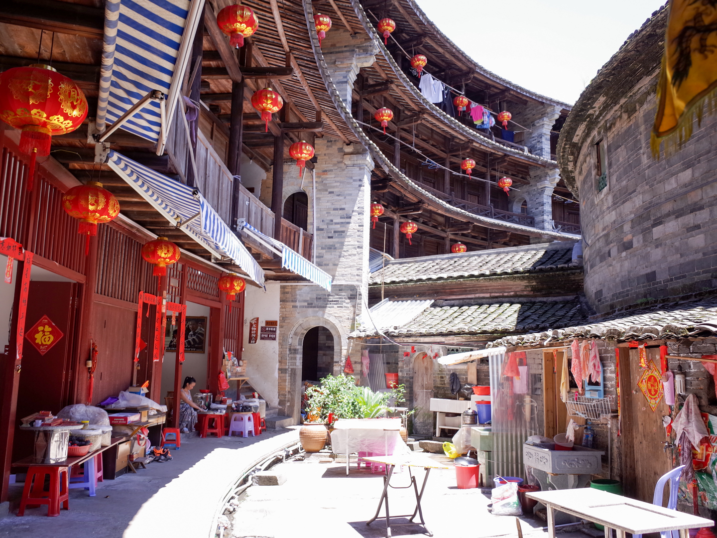这些土楼现在还有人居住,也有局部改成客栈供游客亵玩。