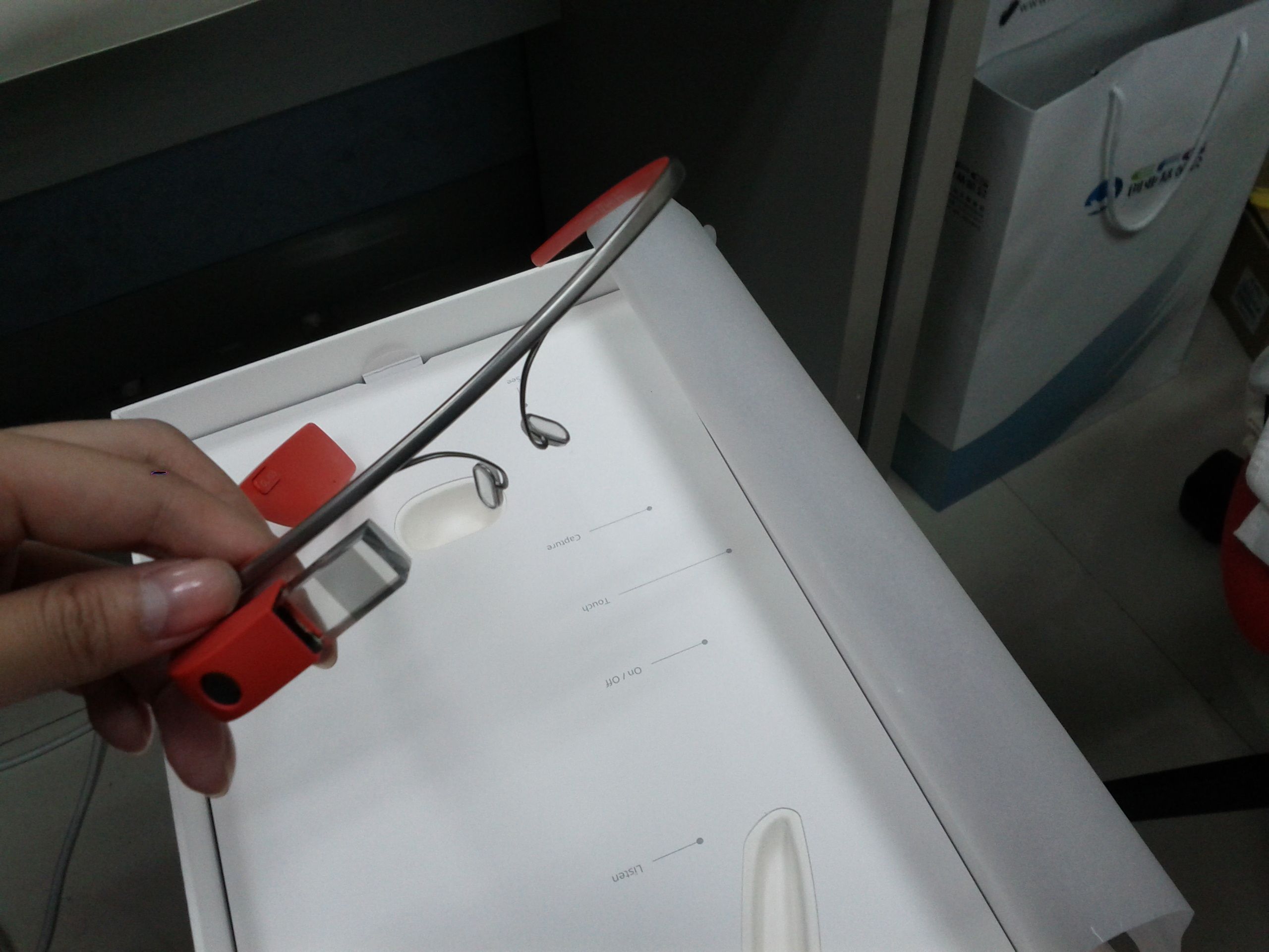 (@akixue 说,“explorer version glass的nose piece是customized的,所以你说的display偏了的问题可能是nose piece不合适。盒子里应该还有几种大小”。)