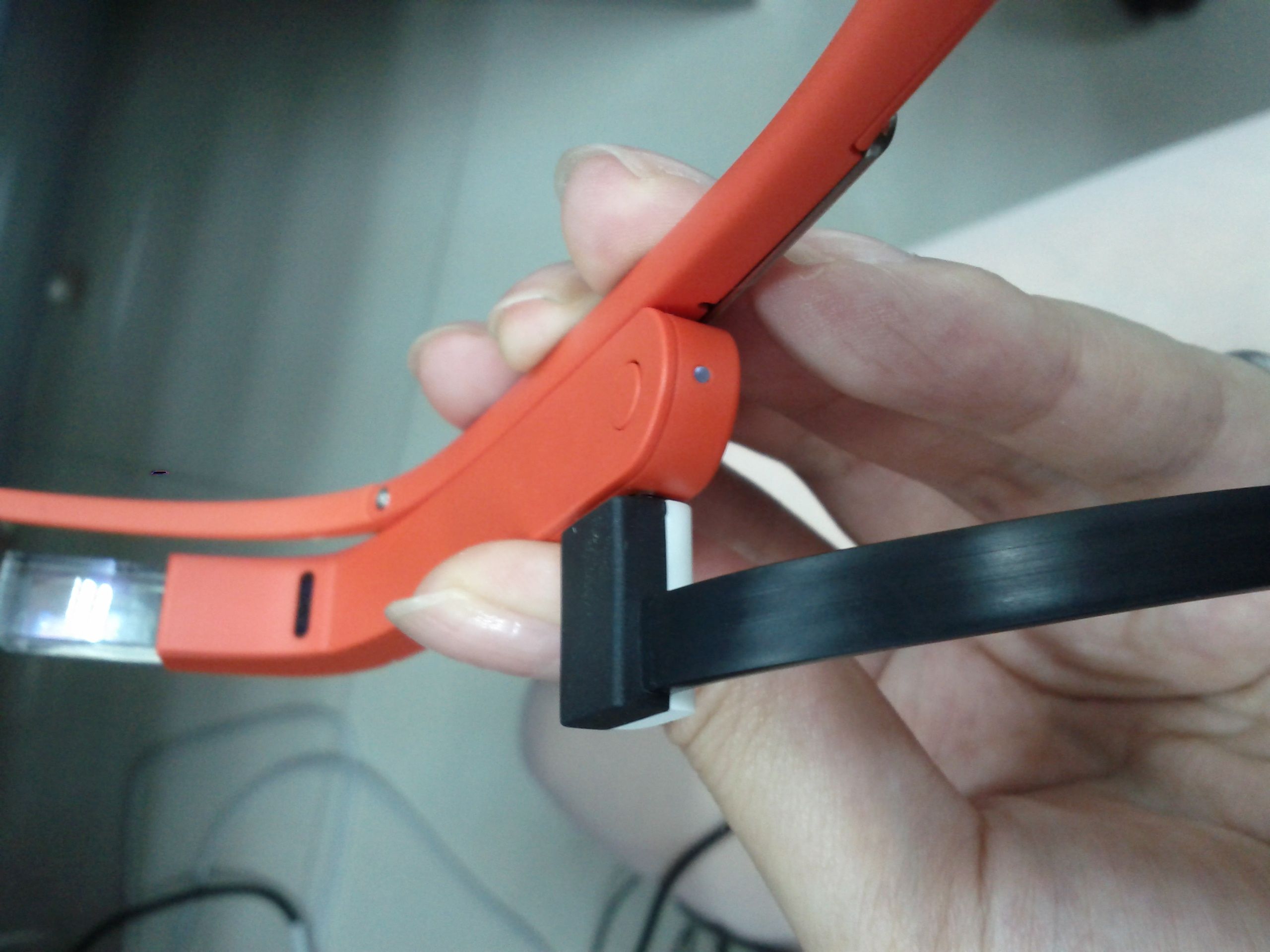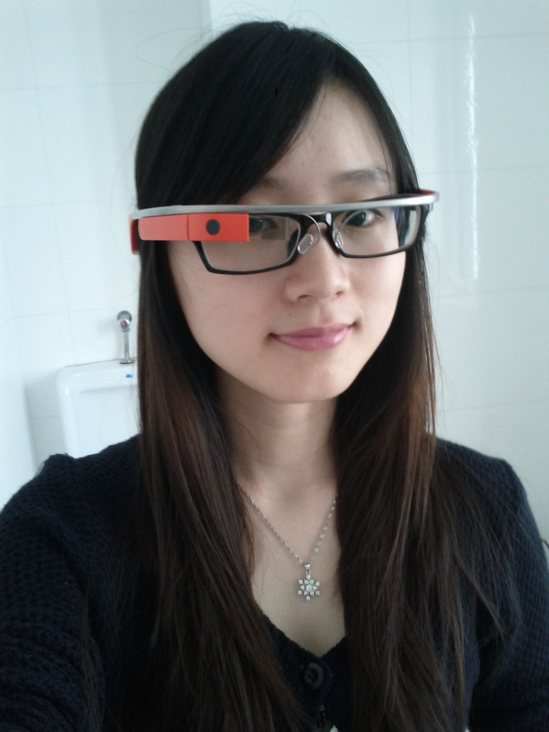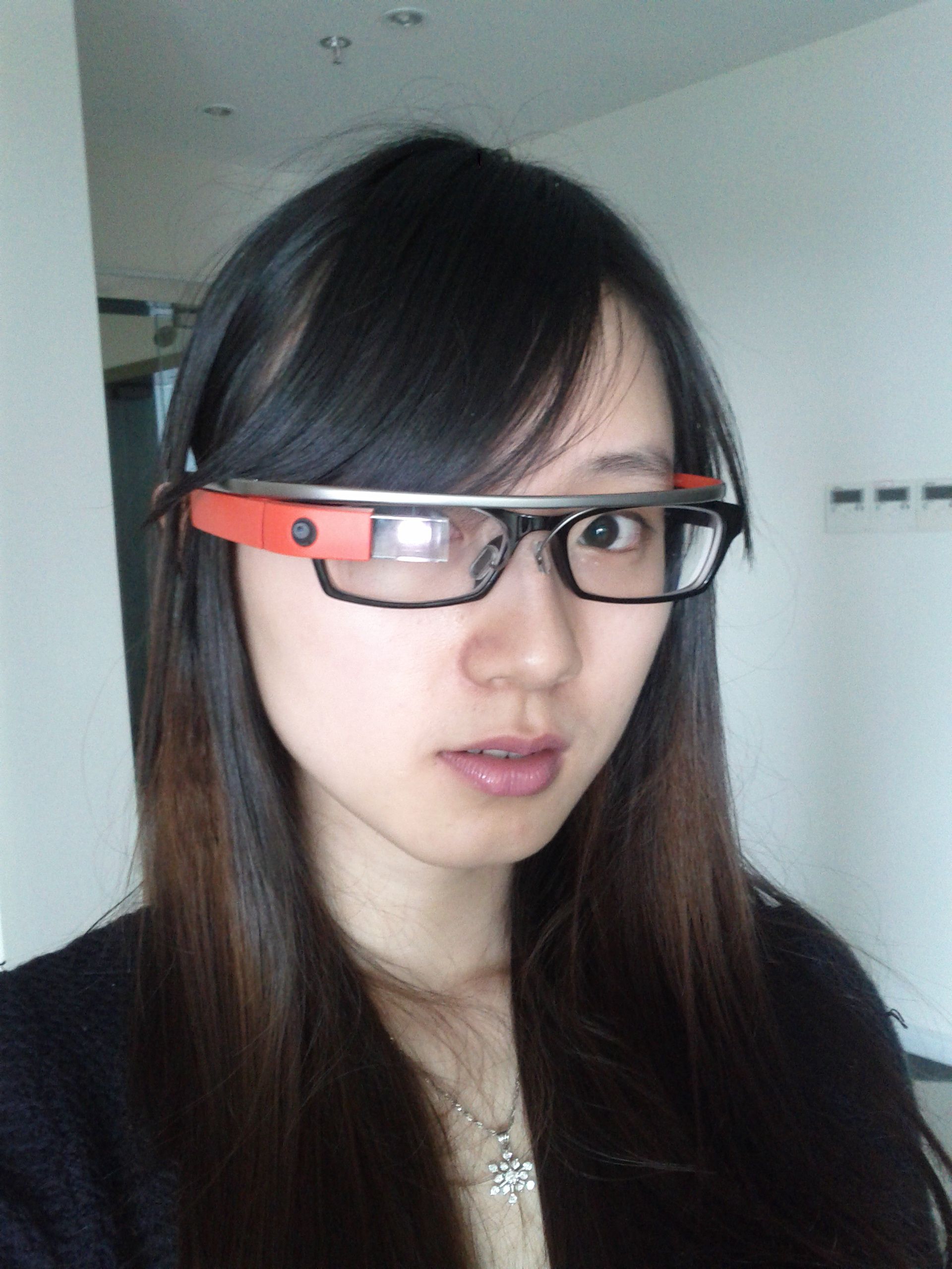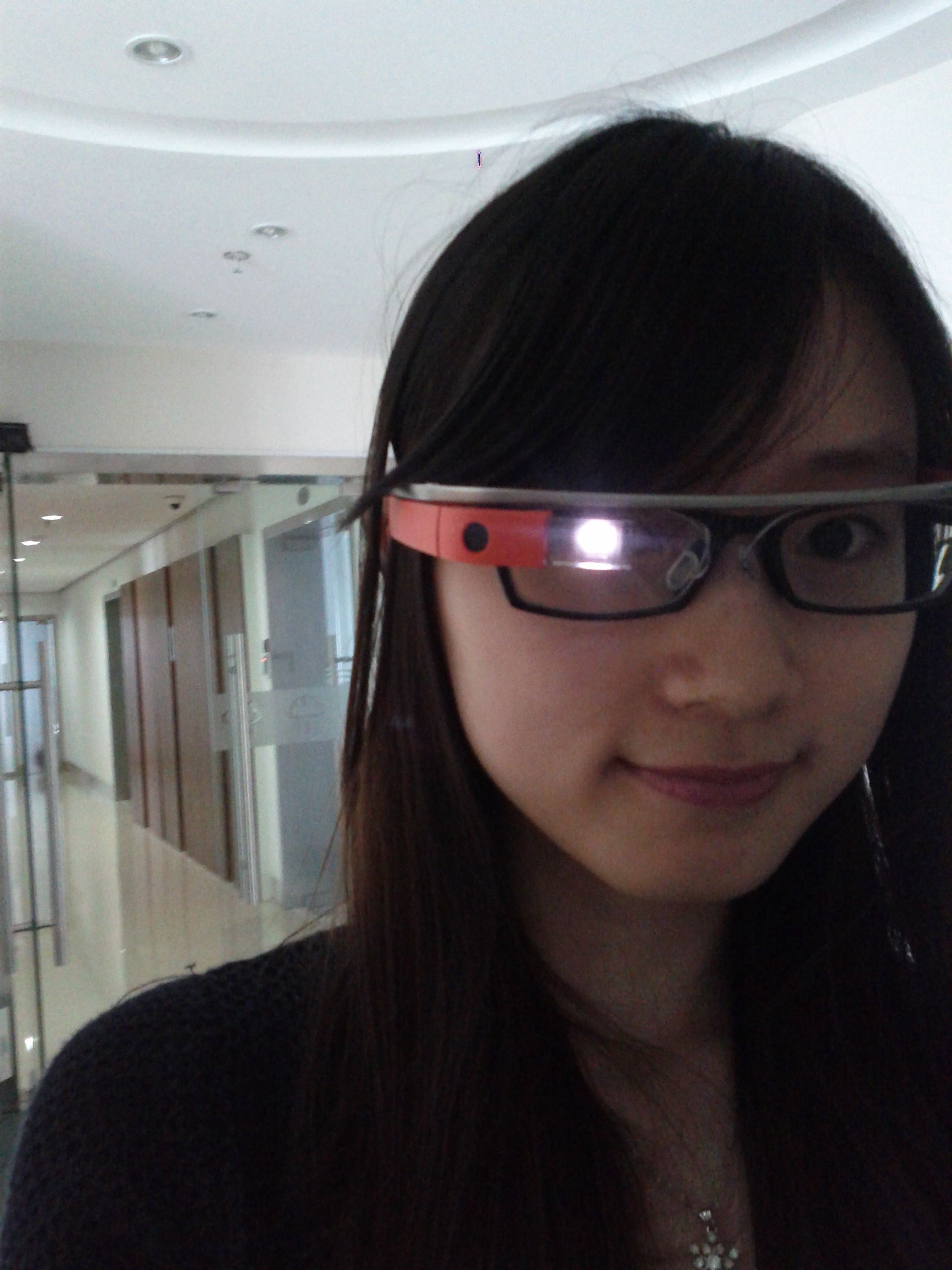 (PS.小雪是个大近视,所以只能把这个Google glass的镜架加在近视眼镜之上,然后原本很帅的眼镜就被小雪戴得很挫了,嘤嘤嘤~)